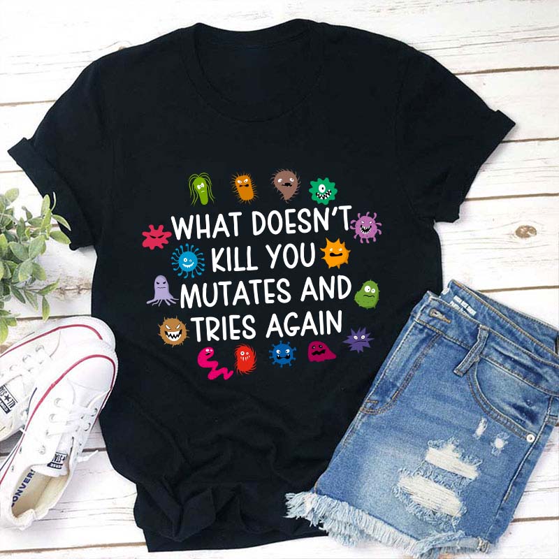 What Doesn't Kill You Mutates And Tries Again Teacher T-Shirt