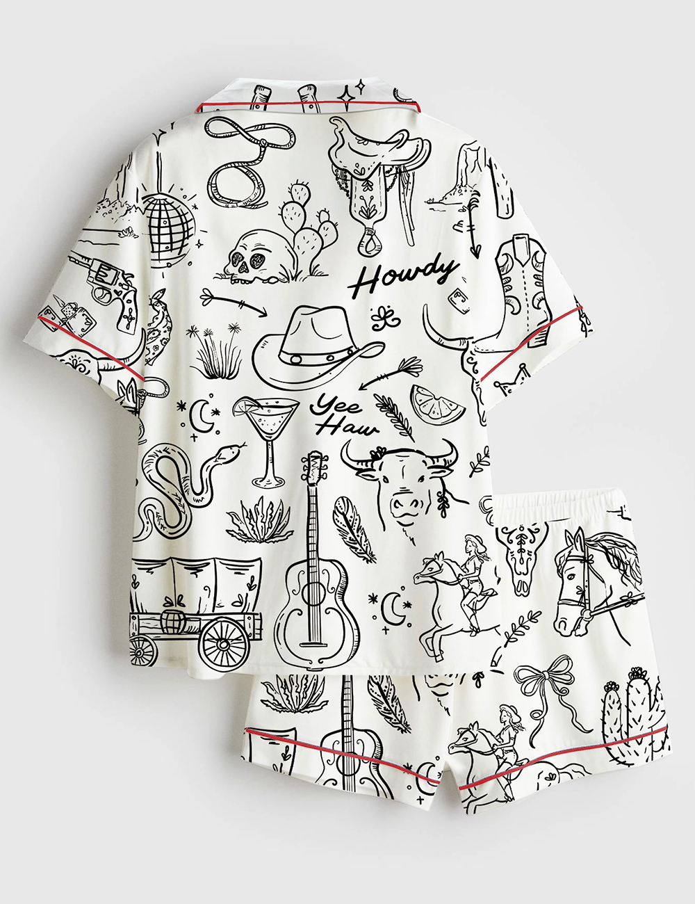 Women’s Cowgirl Whimsical Style Hand Drawn Western Bachelorette Party Short Sleeve Satin Pajama Set