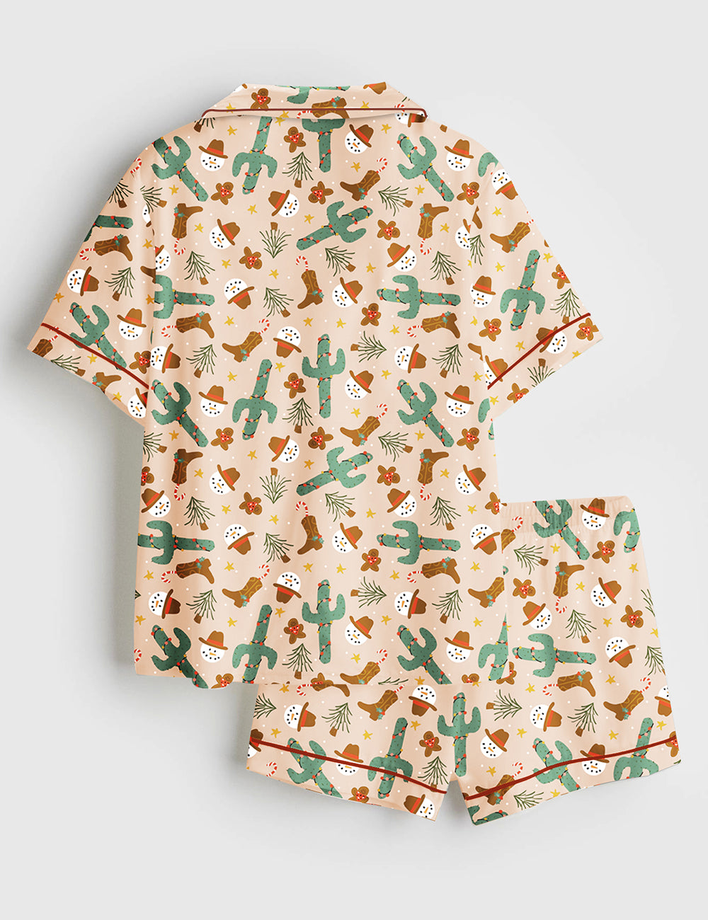Women's Christmas Western Cowboy Boots Short Sleeve Satin Pajama Set
