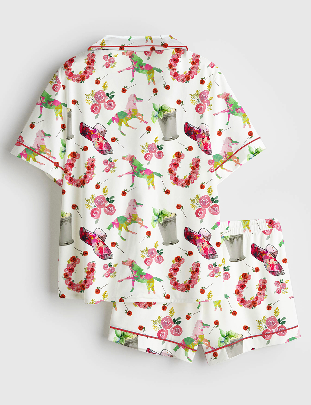 Women's Kentucky Derby Western Horse Pattern Short Sleeve Satin Pajama Set