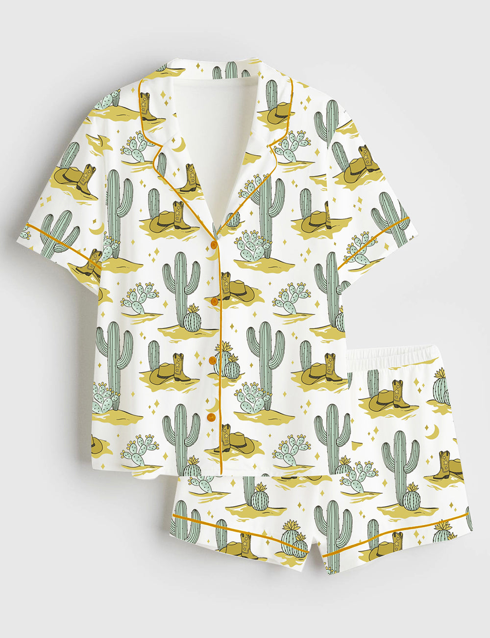 Women's Western Cowboy Short Sleeve Satin Pajama Set