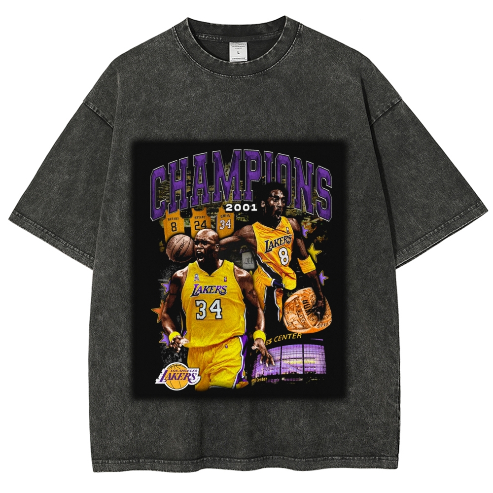 Unisex-Adult Ultra Cotton Washed T-Shirt Graphic 2001 CHAMPIONS SHAQ AND KOBE