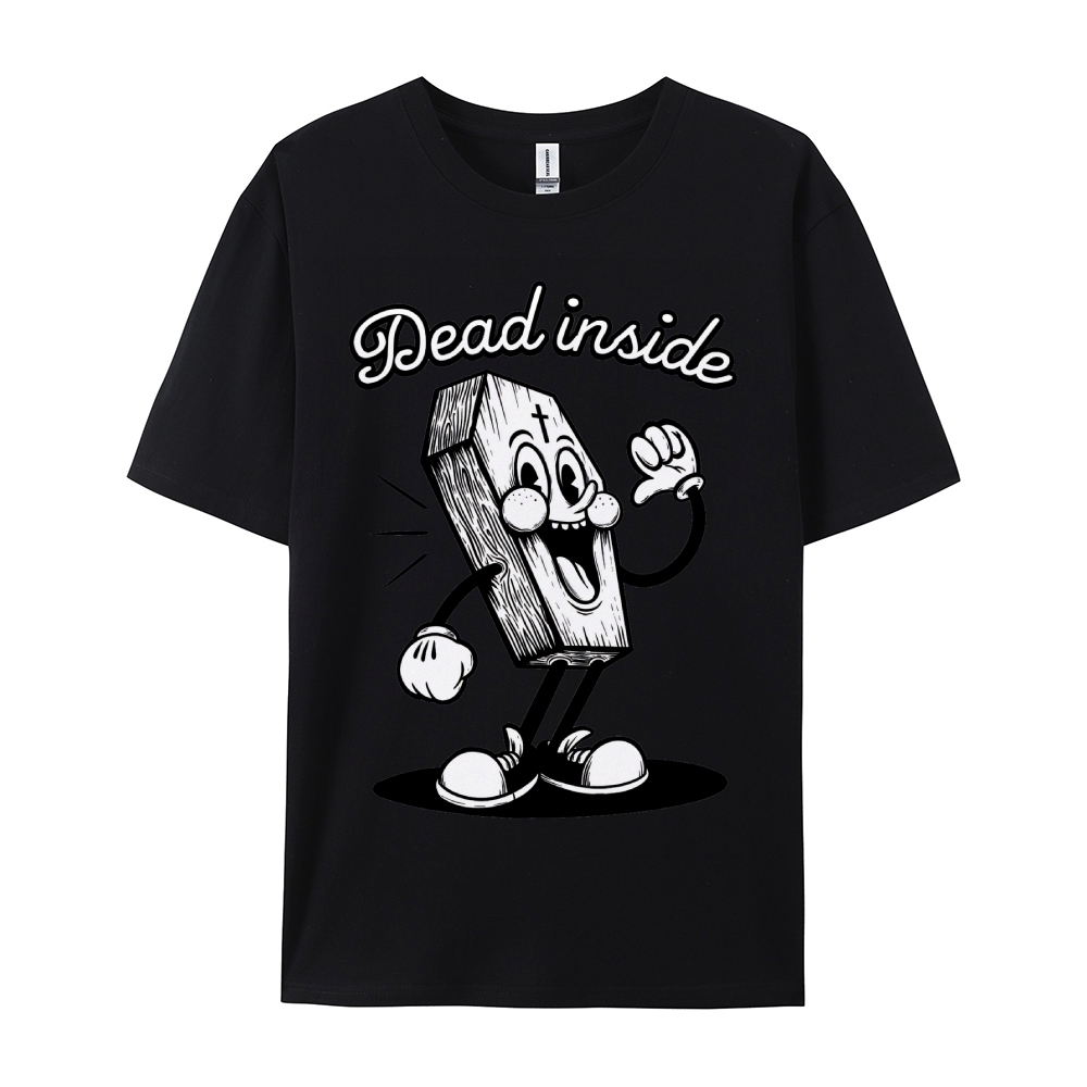 Dead Inside Cartoon Coffin Graphic Round Neck T-Shirt