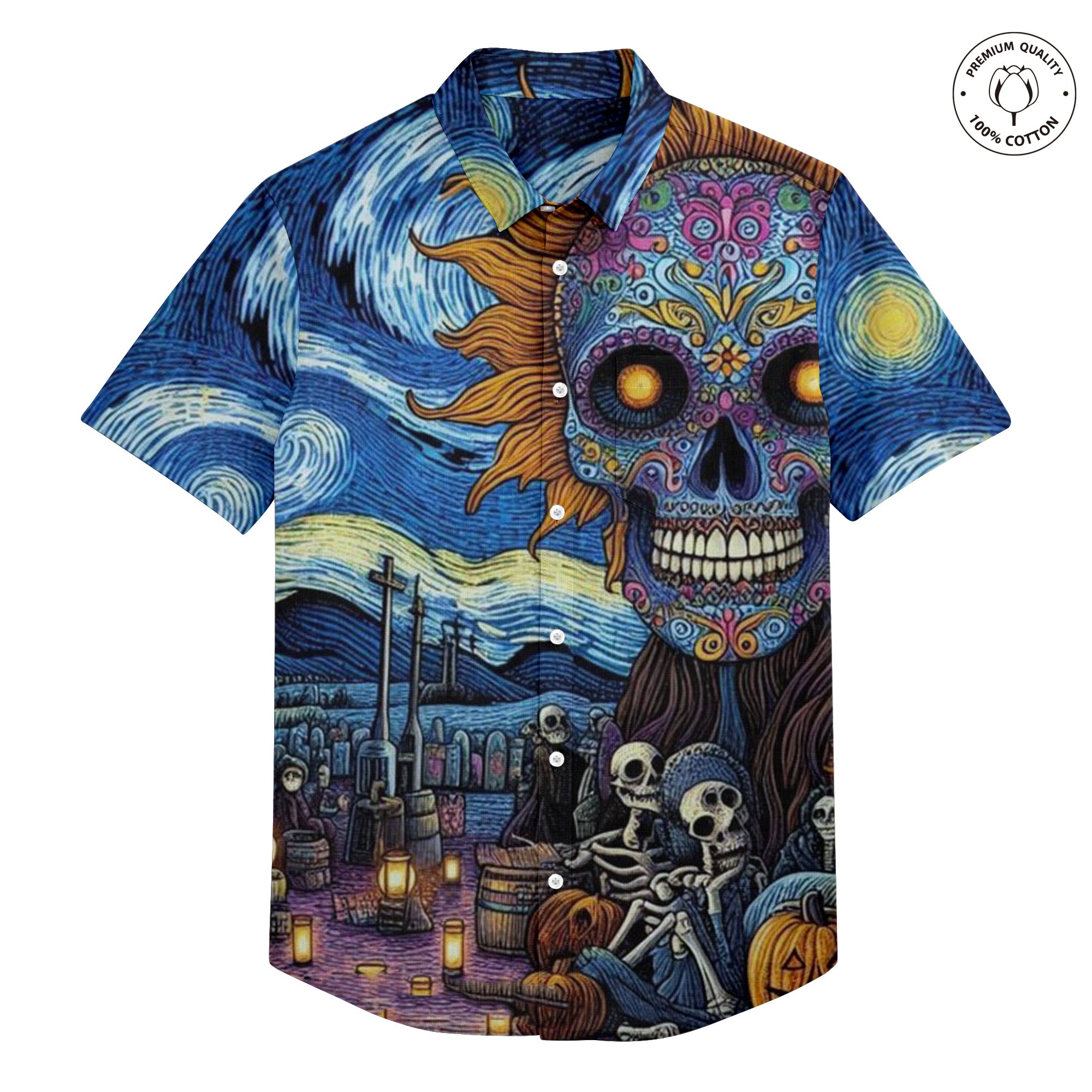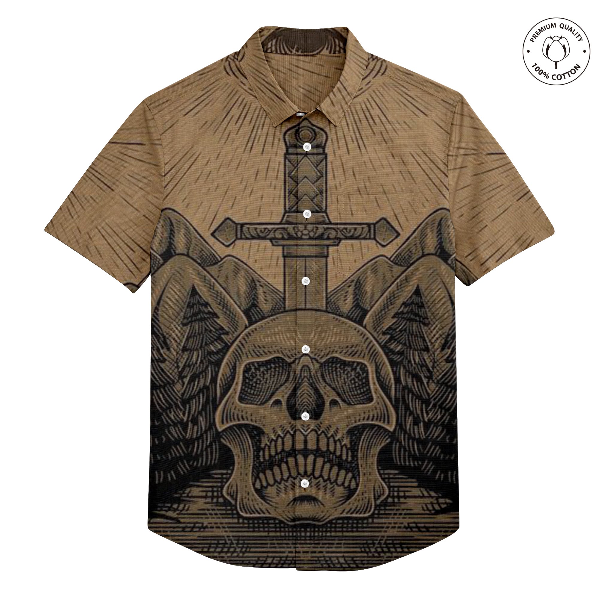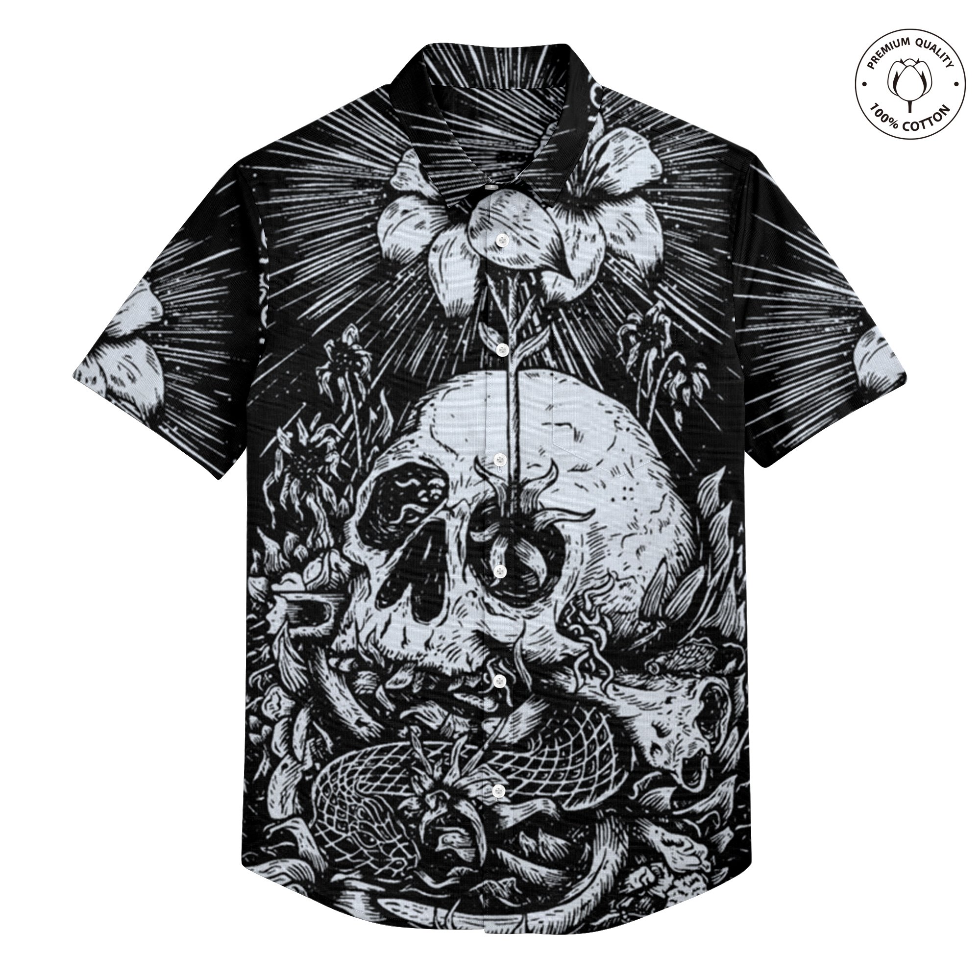 Men's 100% Cotton Skull Art Short Sleeve Shirt