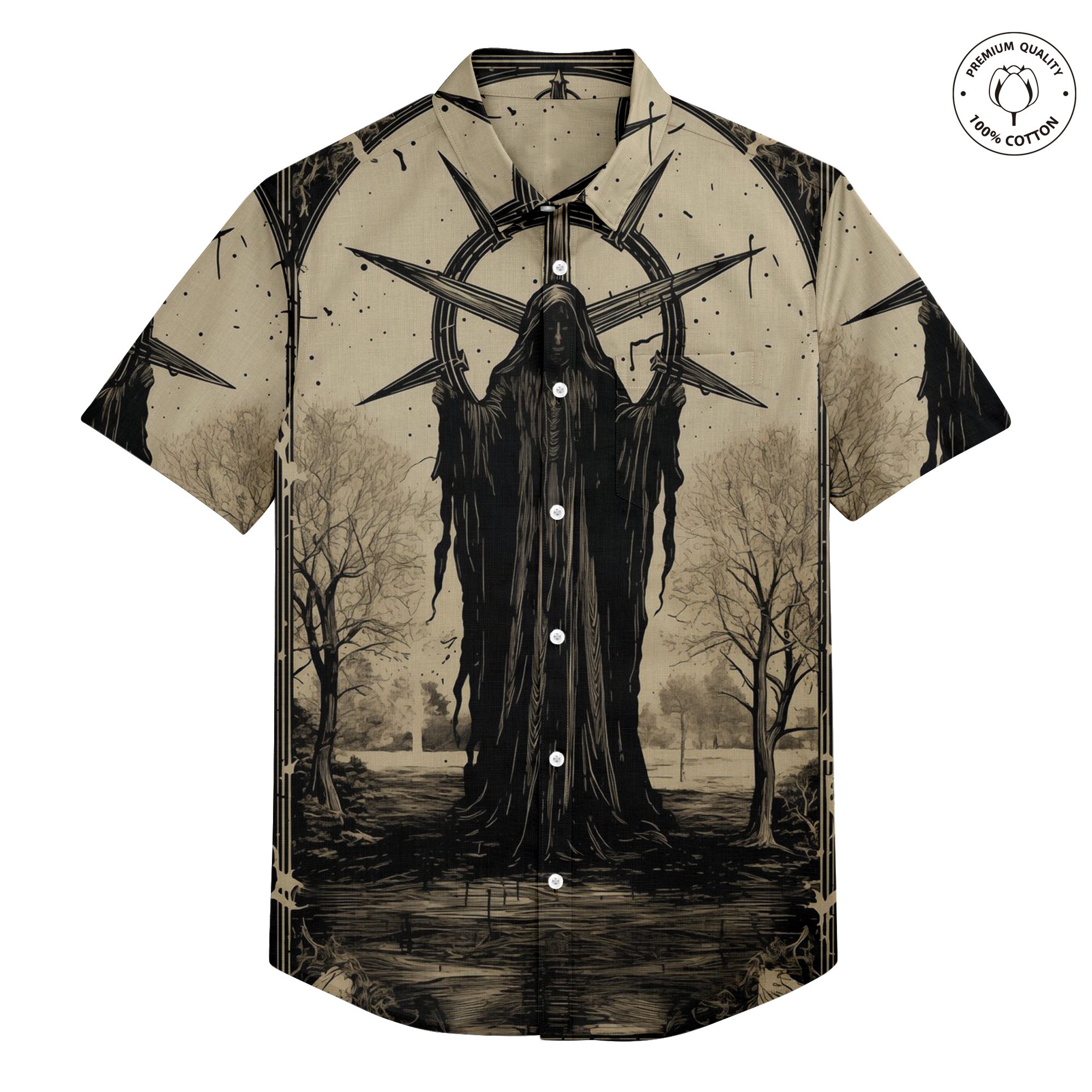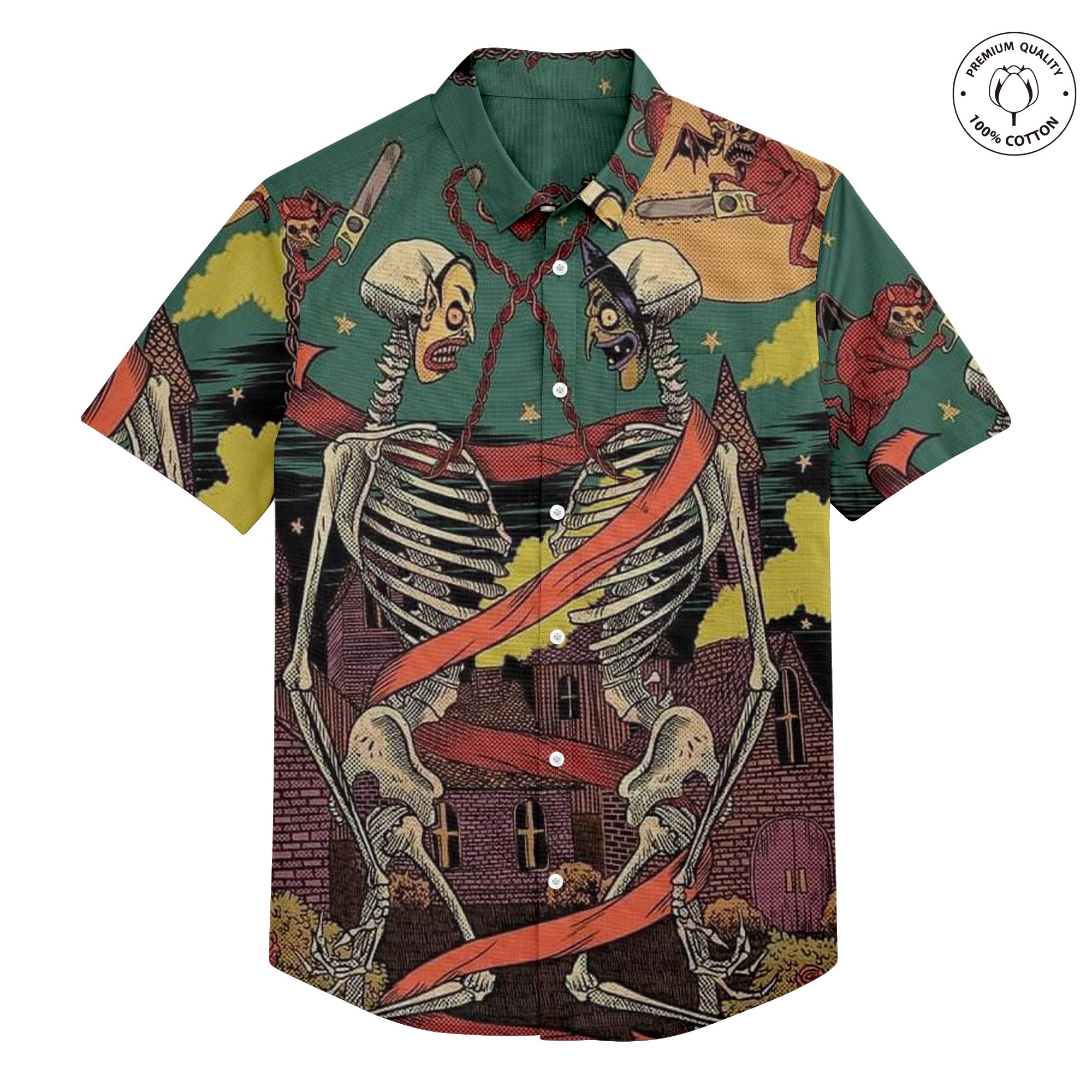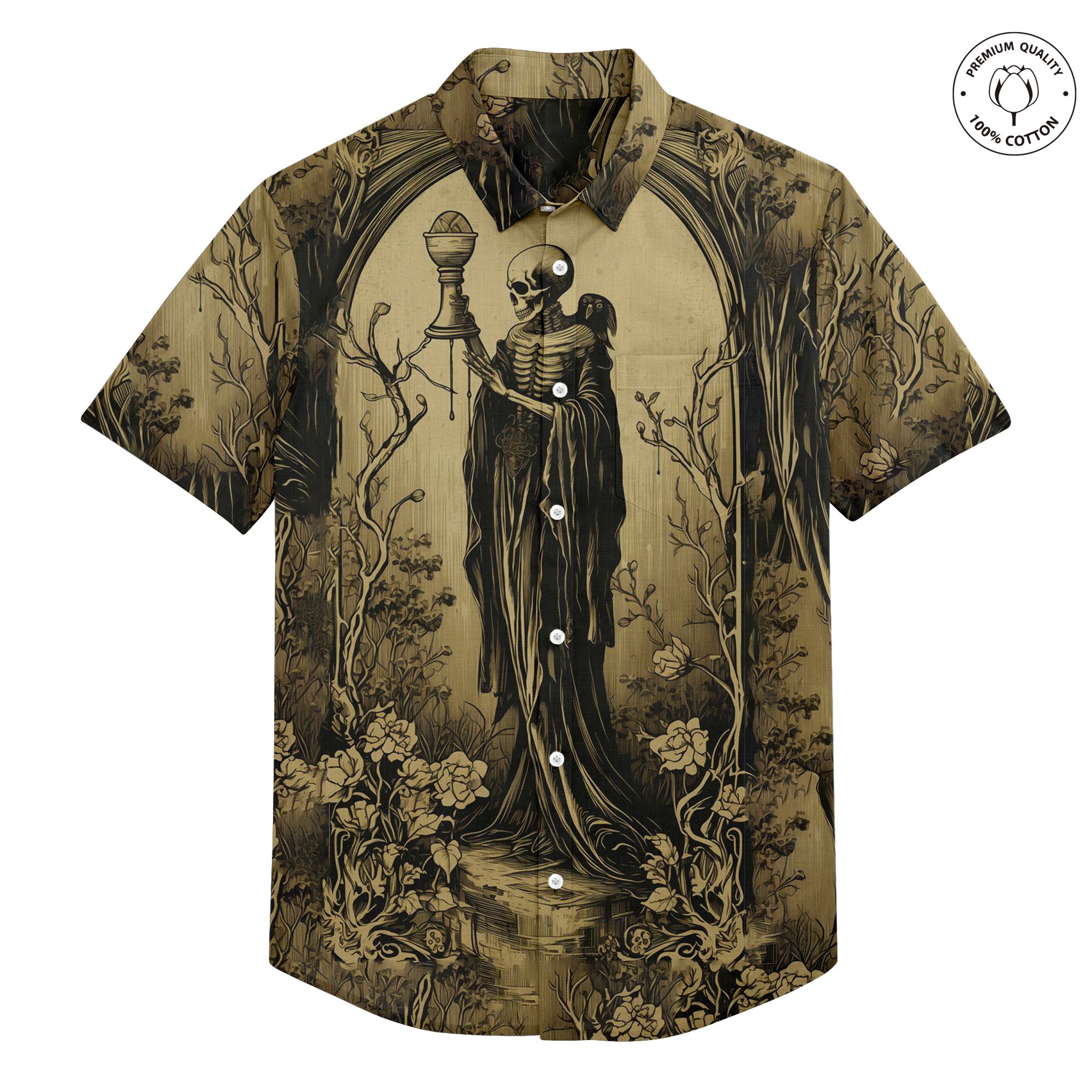 Men's 100% Cotton Skull Art Short Sleeve Shirt