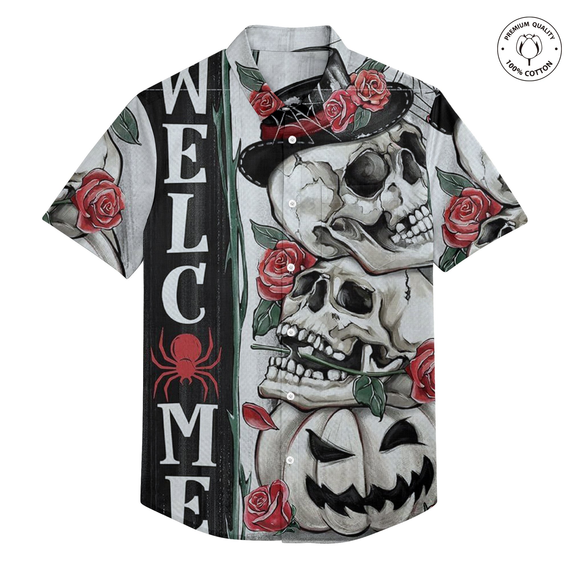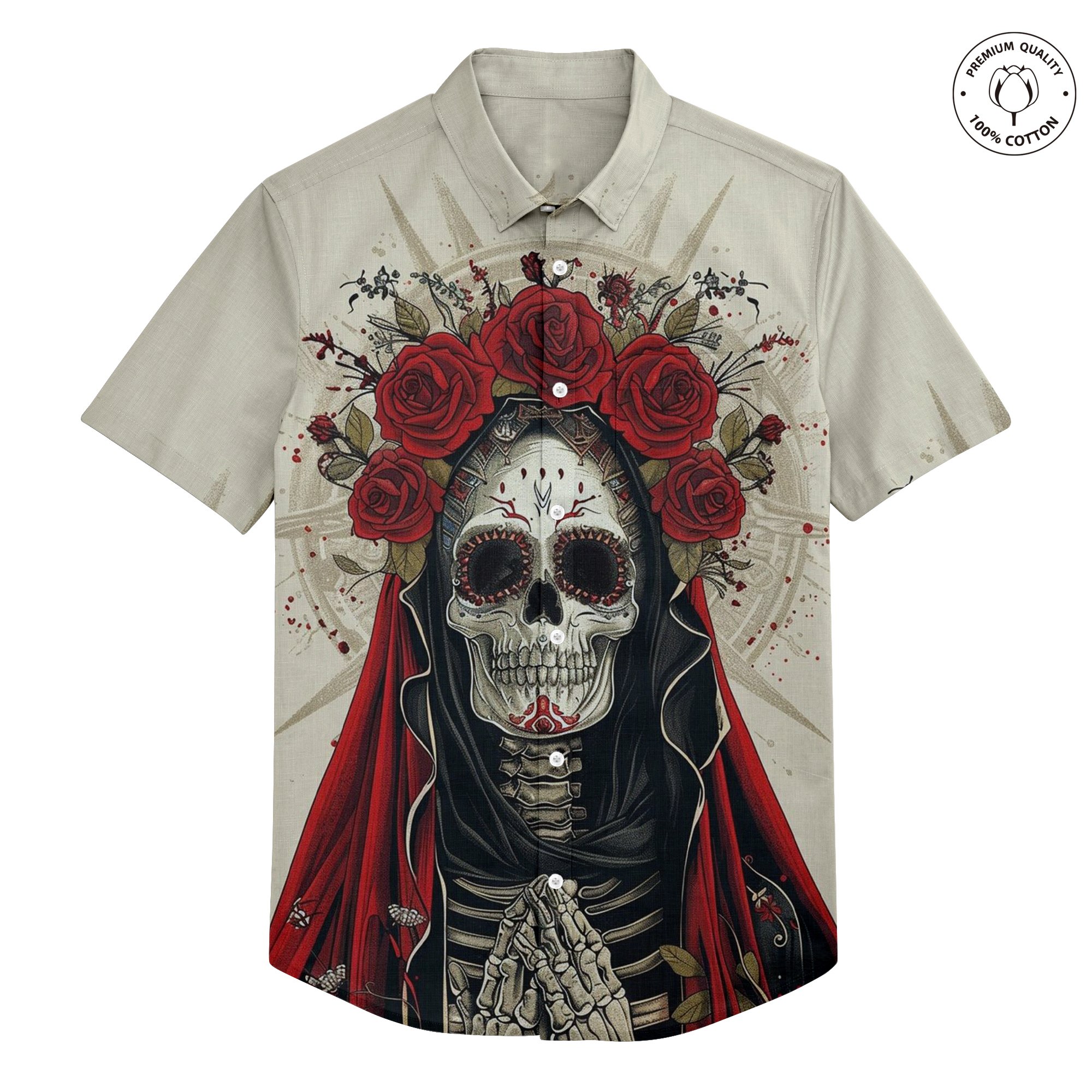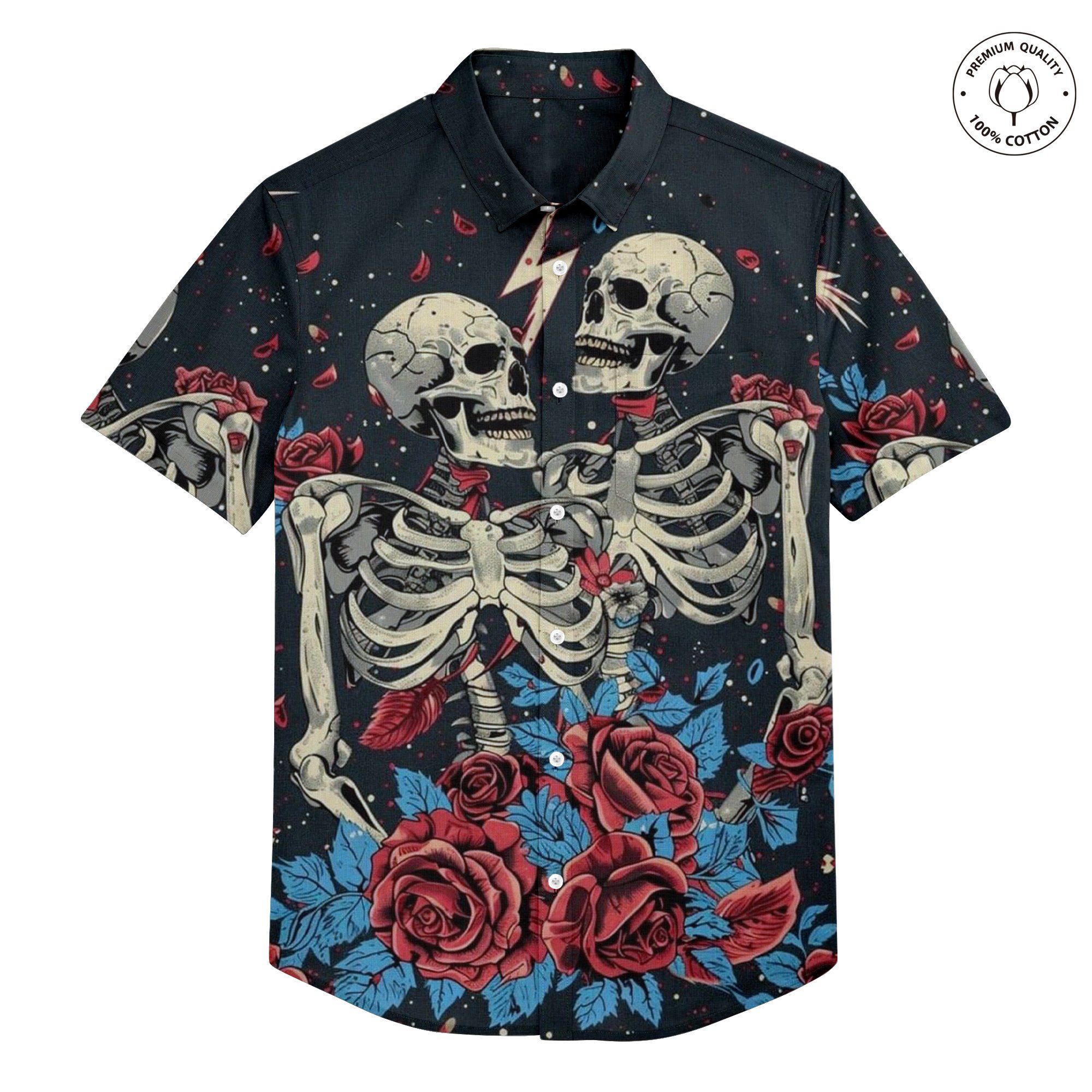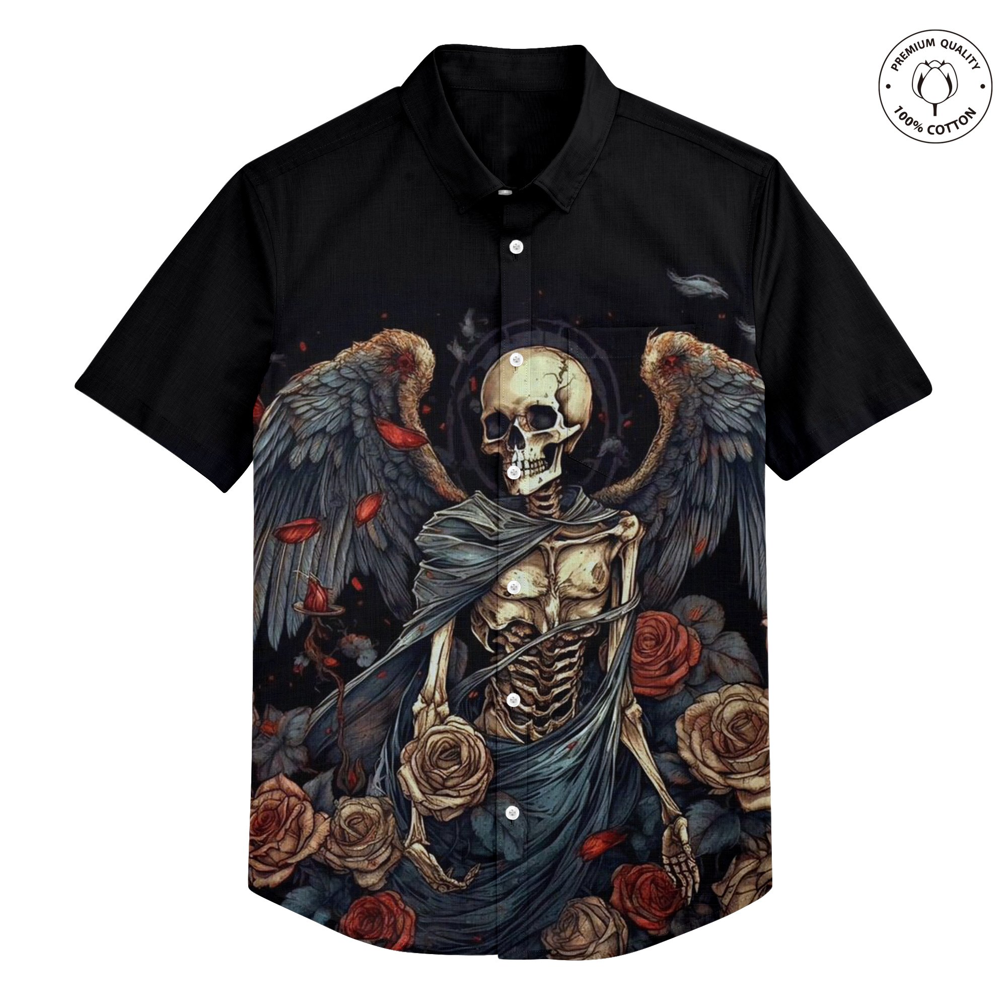 100% Cotton Rose Skull Short Sleeve Shirt (Chest Pocket)