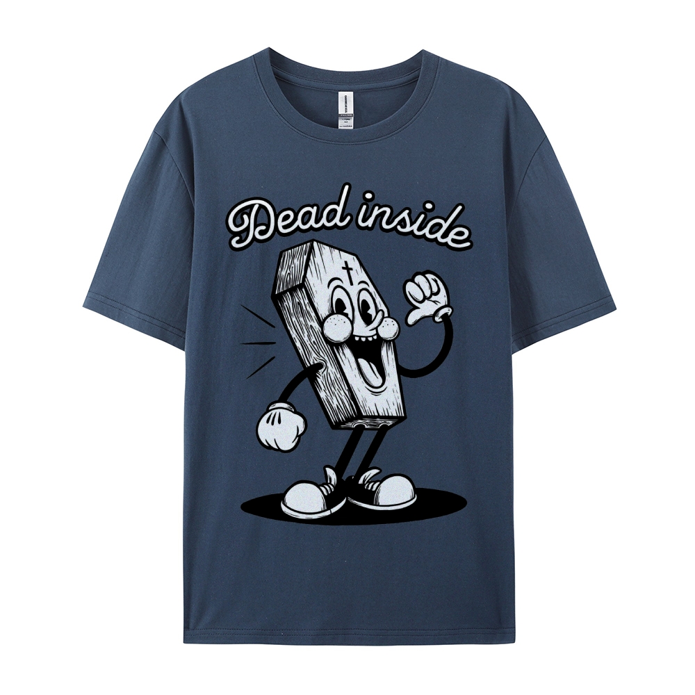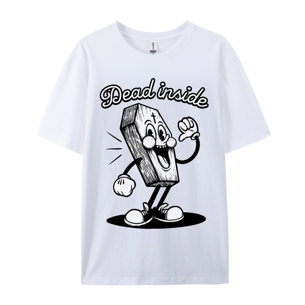 Dead Inside Cartoon Coffin Graphic Round Neck T-Shirt