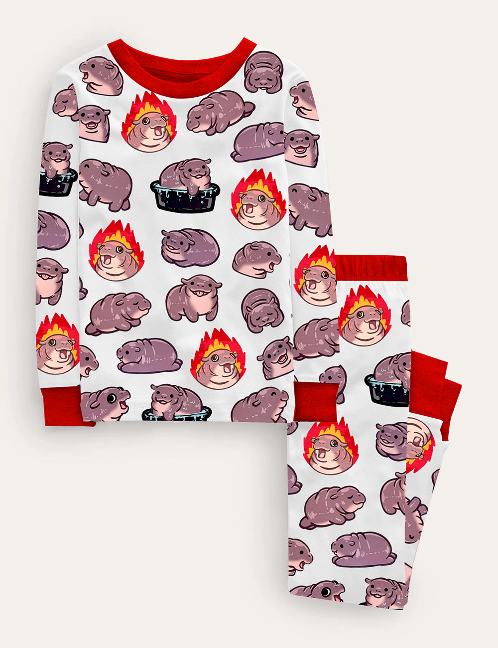 Kid's Cute Baby Hippo Moo Deng Pajama Set