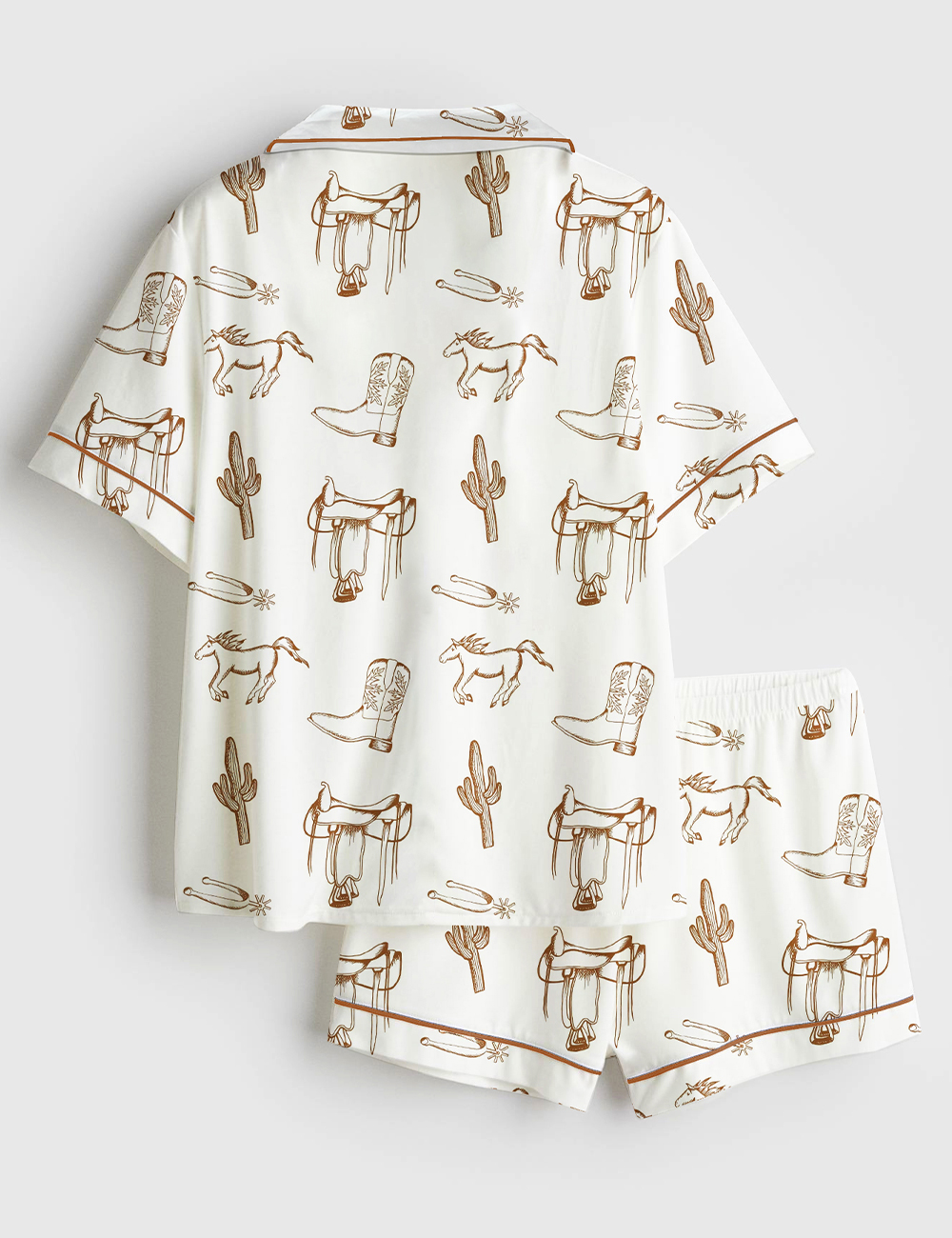 Women's Country And Western Short Sleeve Satin Pajama Set