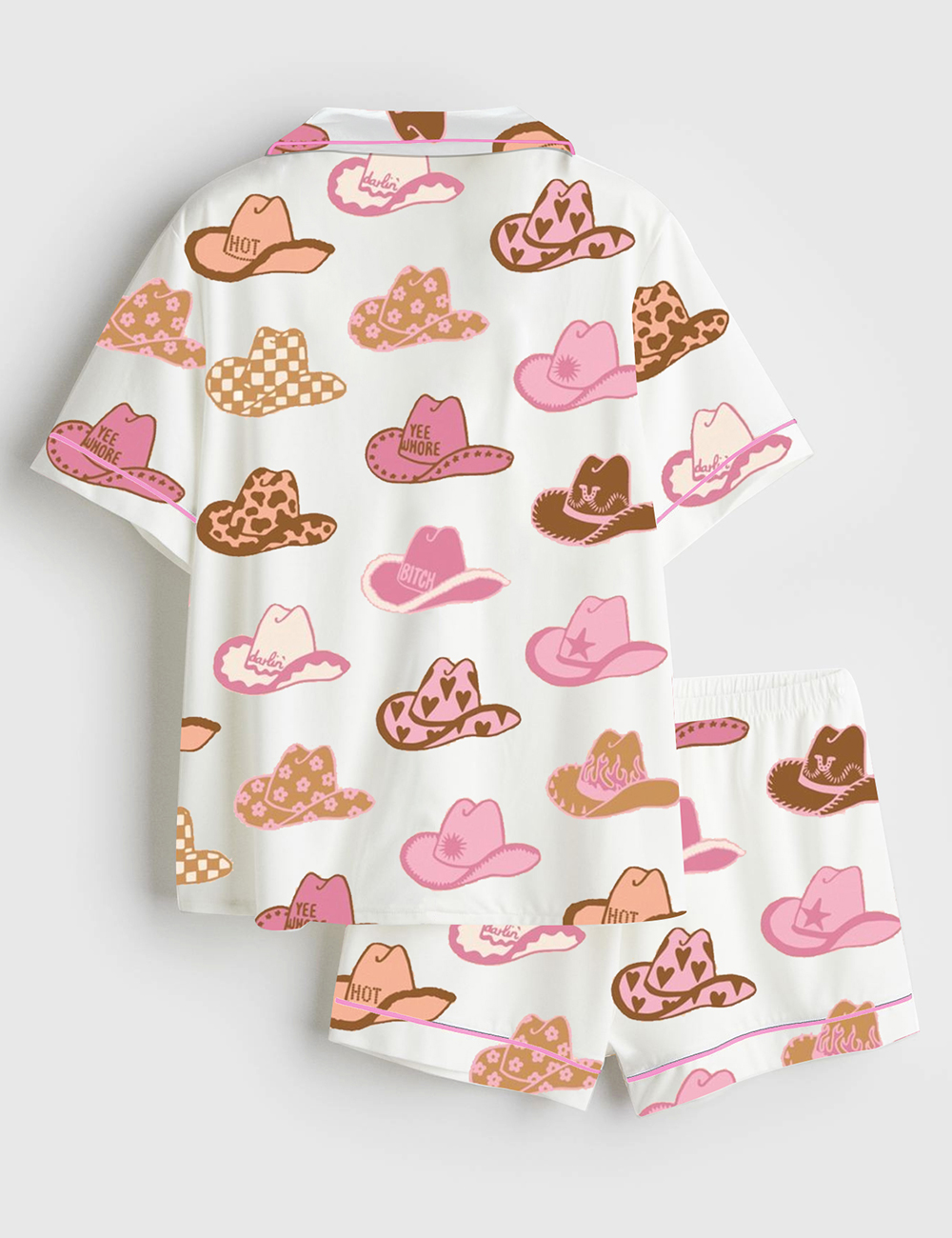 Women's Pink Western Cowboy Hats Short Sleeve Satin Pajama Set